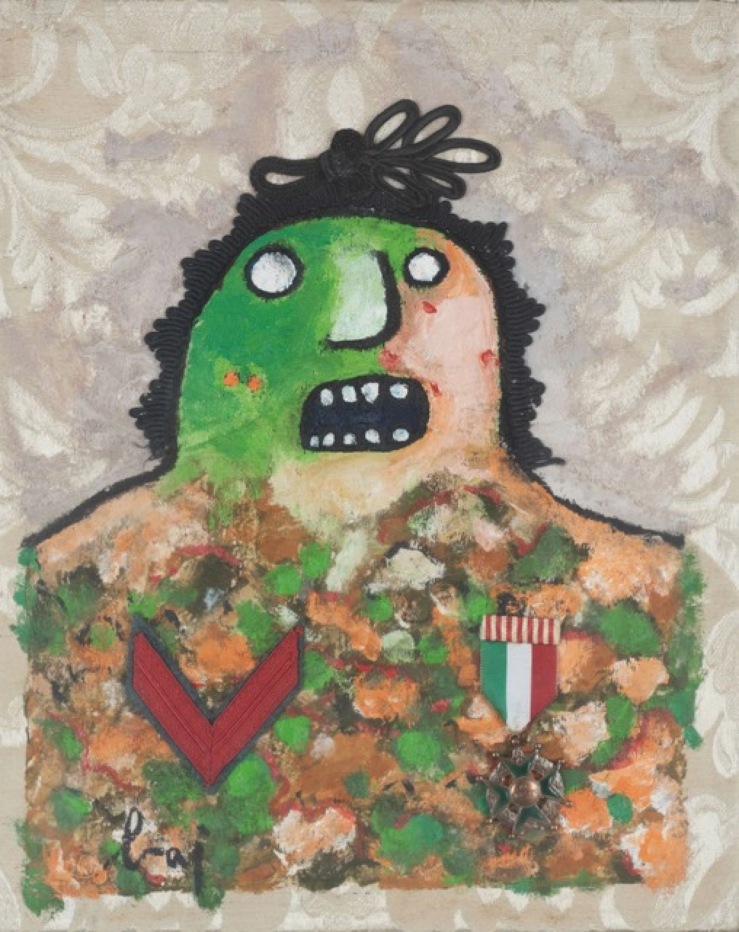 Publishings : - "Enrico Baj. Catalogo generale delle opere dal 1996 al 2003", Marconi | Menhir, Milano - La Spezia 2004, n. 1348, p. 242. - "Baj:specchi, legni, colori", galleria d'arte L'Incontro e galleria CaputoColossi, Chiari (BS), 2026, pag. 127